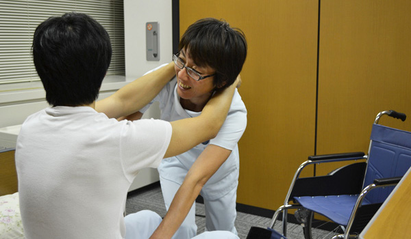 入院患者さんが検査や外来受診を行う際、車椅子やストレッチャーを使って、患者さんの搬送を行います。患者さんの容態にあわせ、細心の配慮をもって、丁寧な搬送を心がけています。